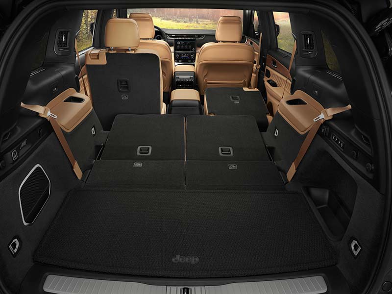 Grand Cherokee L gives you three rows with available second row buckets, a power folding third row, and even quad zone climate control. Source